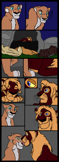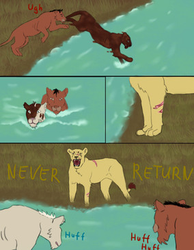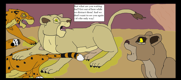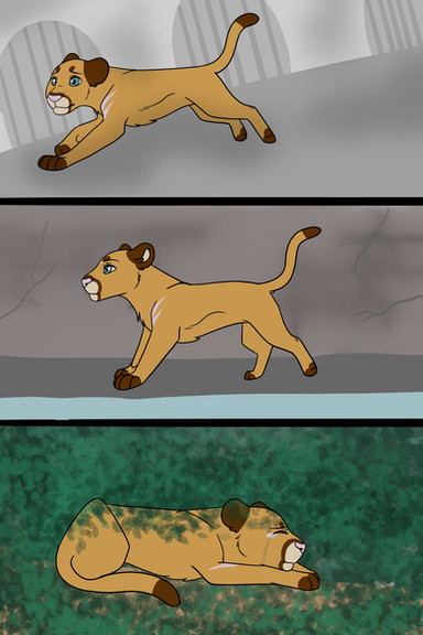 Panting from fear & exhaustion, Amadi breathlessly explained in sparse detail what was chasing them: fire. The most feared killer out there. But there was not much time for talking, as it became evident this fire was out of control. Terrified animals hurtled here & there, many herbivores running towards the flames in blind panic. But Amadi & his cub pounded on, their breath short, but not allowing themselves to stop. The terror was real, & the danger evident, as the fire kept up with them, eating away their beautiful land as it went.Then up ahead, Achieng's sharp eyes caught sight of a low cliff; a shred of hope.