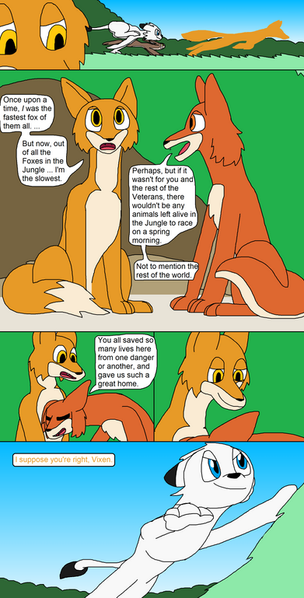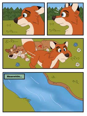 Wowsers, this was a BIG page! O.o Much perspective...SO much. lol It was going so well until the middle panel, where Mr Bully-Blue-Fox just looks...enormous. O_O' But never mind lol I contemplated a copy & paste job for the last panel, but then decided not to be lazy, so I HOPE it looks OkIt begins.
