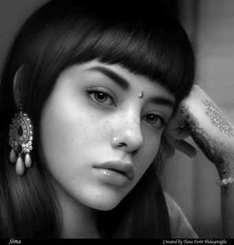 Tutorial stages of Sima. Charcoal Pencil Drawing + Digital Editing. Imaginary Face Design.For NFT: opensea.io/assets/matic/0x2953…