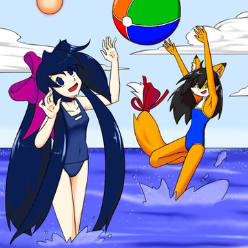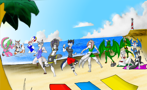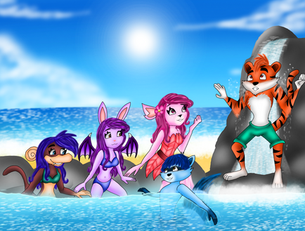 #adults #anthro #anthropomorphic #aurora #beach #canine #dawn #dixie #females #fox #furry #group #mouse #rodent #swimwear #trisha #zexelia #red_fox #arctic_fox #black_fox #phoenix_blood