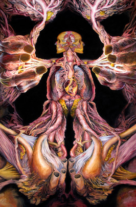 Wow, this is so amazing! The veins and organs look like twisting vines and roots... it's definitely a landscape I can see myself walking though in a dream! I also appreciate your use of traditional media - more and more artwork these days is done digitally. Not that digital art isn't *insanely* hard in its own right, but I always enjoy seeing someone who actually puts a brush to canvas to create something incredible. Great piece, I love it! And congratulations on the DD!