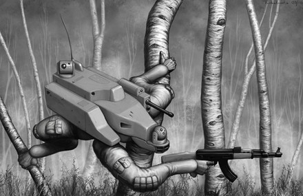 In addition to heavy firepower, Ghost Tigers are equipped with flexible rubbery armor with non-newtonian fluid properties. Fast impacts cause it to harden locally.