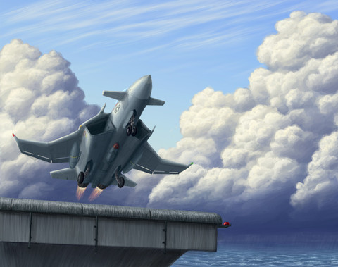 Man, magnificent rendering on the mech, and the background looks great! Very nicely painted, nice lighting and sense of space, good simple color scheme ... the jaw-dropping part for me though was the arm design. Wow! So original, and it looks very robotic too.