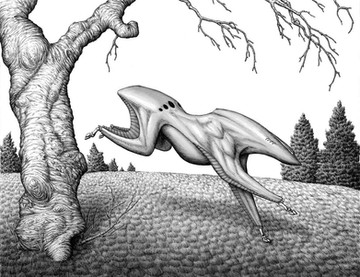 ALSO--the weirdly articulated limbs. Okay, it wouldn't be too weird if those arms were only composed of two segments--but after a moment of study, you see that *third* segment nestled close to the body! *shudder* There's something so compelling yet WRONG about obviously functional limbs that resemble ours but are clearly....different.