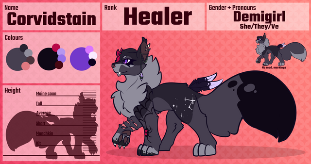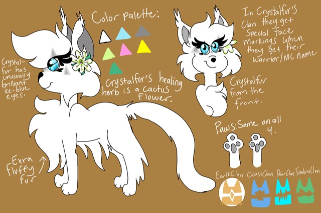 Extra: No left eye; crystals grow out of the socket. Mentored Nightglow . Everyone interprets her "hearing" crystals talking to her as StarClan communicating with her, so she was pushed to become a healer. She didn't mind much, though, as she doesn't like fighting.
