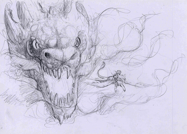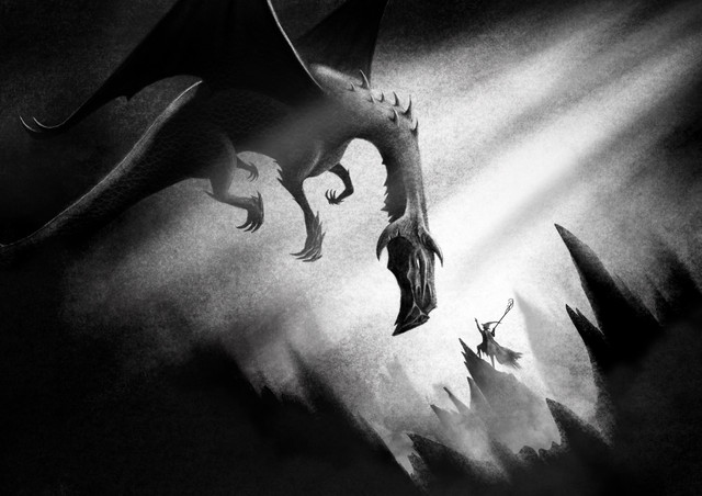this one started purely as a piece of concept art, but moved quicky into more 'illustrated scene' territory (that's been happening alot lately) I'd also intended to give Ancalagon a pair of front paws for this drawing, but once again, I found the wyvern-build to be just too naturalistic and compelling to pass up on.