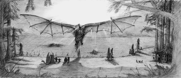 Really effing awesome picture of Ancalagon emerging from the perpetual haze & murk around Angband. Not much else to say, the lighting and shading effects are nice.