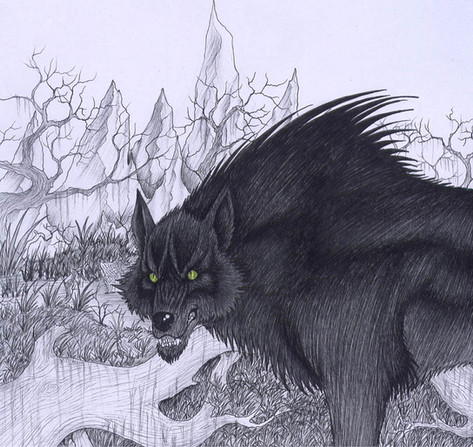 I myself was trying with this drawing to sort of go "back in time" so to speak (in popular imagination) and do a wolf-monster as one might be imagined by, say, people from a thousand years ago, who would have had no difficulty believing in the evil nature of real life wolves.