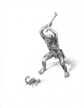 Character sketch for a painting I'm working on. the scene involves a man, a dwarf, and a centaur walking through a forest (see man here [link] )I wanted the whole piece to have a vaguely 16th century feel to it; it seems stylistically fitting for a piece that goes with basically a treasure hunt adventure narrative, it's also a time where you can get away with having a dwarf and centaur in the same picture (centaurs, like a lot of creatures from classical, southern european mythology kind of went underground for a thousand years or so, only to come roaring back up with the renaissance and a renewed popular interest in antiquity)