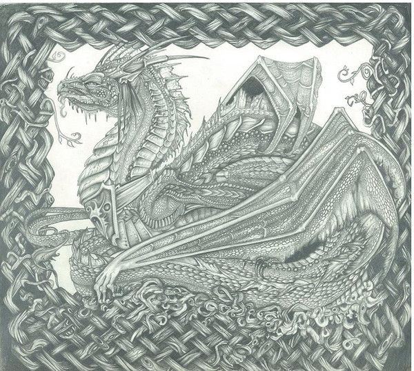 Gorgeous work! I love the scales and the frame! Your solid style with the inks reminds me of Karl Kopinsky, one of my favorite artists. Your pencil stuff looks like John Howe to me. Another favorite artist. Small wonder I like your art so much.