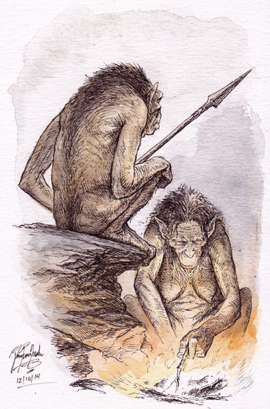 Btw, as I'm assuming, based on your user name, that the diversity of hominids that once coexisted on earth (and their likely responsibility for the consistent notion across mythology of man as once having shared the world with a cast of trolls, dwarves, fairies, menahunes, ect) you would probably enjoy, if you don't know them already, the beautiful work of the Kennis brothers, two forensic style sculptors from Holland who I consider to be probably the best artists working today, and who's work is a ceaseless source of inspiration for my takes on the various races of Tolkien's world