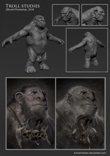 Having spent some time up in sasquatch country a while back (the moss-bearded temperate rainforests of the Pacific northwest, looking for all the world like the "Celtic forests" of the UK and Ireland but on a gigantic scale, will forever be my mental image of Ossiriand) I can say that particular beast was in fact on my mind while designing these. Being familiar as you are with my opinions on/influences in portraying the "trolls" of middle-earth and their likely relation to one another, I suppose it's not surprising to you that a giant forest dwelling possible hominid from our real-life human mythology (effectively a troll in totem pole people-mythology) would factor in my portrayal of the tree shepherds