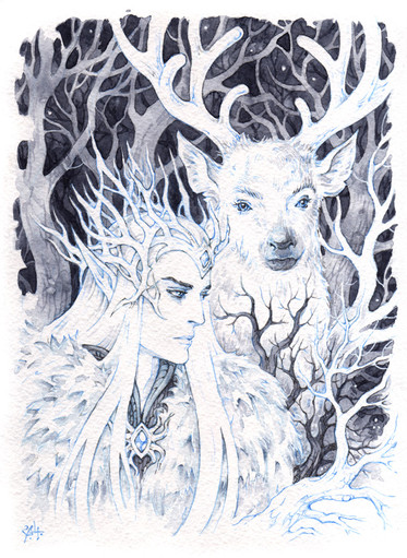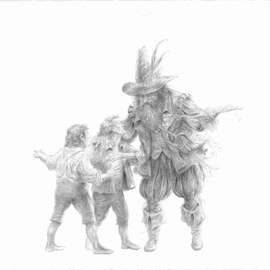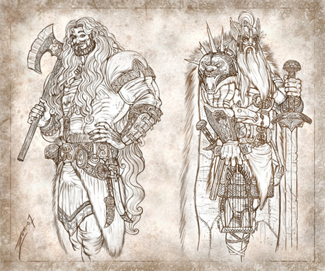 Thorin is brought before Thranduil, the ElvenKing of Mirkwoodit's funny to think that Professor Tolkien's long-percolating and for the most part deadly-serious mythology of Elves and Men had its debut in the public eye with 'the Hobbit,' a childrens' story taking place in the same world as Turin Turambar, Luthien and the Jewels of Feanor, but many thousand years later, and centered around niether elves nor men, but a creature seemingly designed as a child's audience-proxy. A smaller and tonally much lighter work, only vague hints are given of the scope and grandeur of the world little Bilbo goes adventuring through; swords originally from the ancient city of Gondolin, a mention of the history of the division between the high elves of the west and the dark elves of the woods, and a borrowing of many vague plot points, character types, locations, etc. It gives 'the Hobbit' an immediate sense of a distinct and consistent world, much moreso than, say 'The Wind in the Willows,' but at the same time it's fun to remember that, for the readership of 1937, 'Middle-Earth' (a name that is never used in 'the Hobbit') and the entire Epic High Fantasy genre it spawned, with its well established tropes and taxonomy of fantasy races, didn't exist yet. The dwarves, trolls, giants, skin-changers, and elves we encounter are not yet so strictly the Middle-Earth versions of themselves, rather we are brought along with Bilbo on what feels like a tour of the highlights of Germanic mythology. I tried keeping that in mind when drawing these two; that Thranduil and Thorin could just as easily be kings of, respectively, the "Dokkalfar" and the "Dvergar" as of Tolkien's Eldar and Khazad.