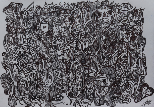 Just another doodle on some a4 paper with a black ball point pen. I was going to do a digital drawing but I still can't get used to the feeling of using a tablet, it feels strange as.I spent most of the time just lazily drawing lines but I did draw a bird or two since I've noticed the birds in my neighbourhood are a little more curious of me now that I leave a fresh bowl of water out for them to drink and bathe. Also maybe sometimes I even try to mimic their calls/songs lol