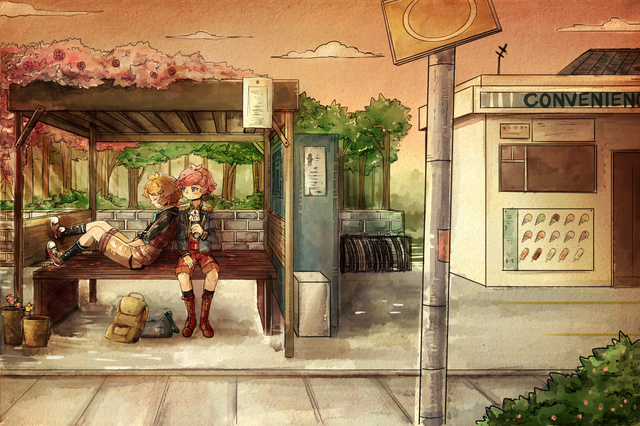 I saw this on your tumblr hoho (because Im stalking you there too) 8D XD I love it that youve put them in a modern enviroment, its super cool to see them like this! And I love the over all feel, it make me nostalgic (in a good way) to see them at this bus stop. Β