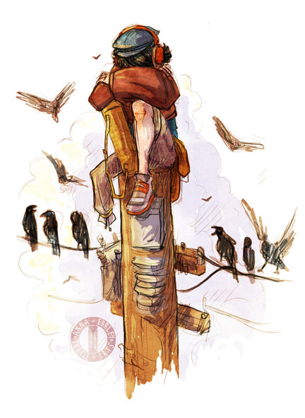 I really like the translation from their world to the modern world, but how you still incorporated elements from the Sky Herder world into the piece (for some reason, the bag really sticks out for me). And Meir with all the bandages just puts a smile on my face XD