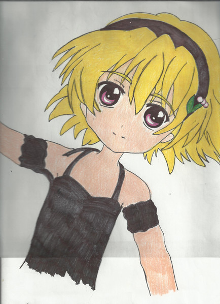 you did well with this one but her pose makes it look slightlysuggestive or she needs to pee (first point's also shown by her stare). gppd colouration and coloured shadow is a nice effect