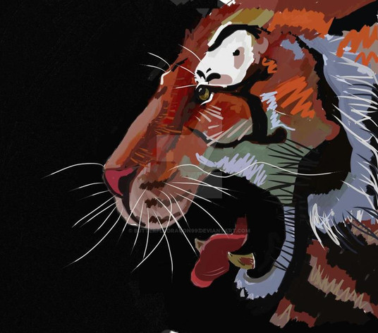 it's very realistic looking even with the bit of abstraction created by the effect. i think it may make it feel even more realistic, like a motion blur- it seems like i am witnessing the roar in action in this painting!