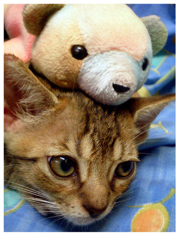 i have 3 cats. *The rest of the little guys that you see are either my sisters', moms', friends' or strays. We no longer have Woody, he went to a wildlife park yesterday. We live next to a fairly big patch of woods, so we come across critters from the wild to the tame ones from time to time. :3
