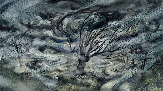 Oh wow, I love all of the different components here, the tree like shapes are really appealing, along with the changes in color and the blobbier parts to the left.