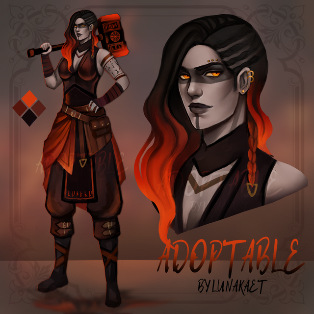 #digitalart #characterdesign #adoptable #originalcharacter #adoptablesopen #humanoid #fantasycharacter #commission #characterconcept #adoptableauction #dnd #sale #warrior #demongirl #girl #redheadgirl