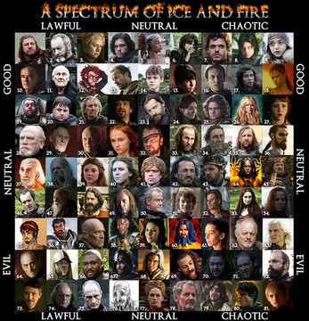 I would put Savos Aren in Lawfull Neutral for his "Let the problems solve themselves" way of mind, but Cicero wins the cake... love that psycho.