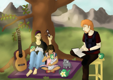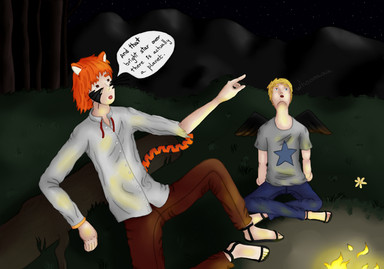 (psst, Sam's a girl. As in Samantha xD But she forgives you, cause she's wearing a very large t-shirt that doesn't flatter her small breasts. She hasn't forgiven me for making her look like a dude yet, but she will one day, I'm sure...)