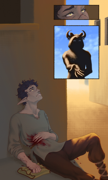 Also, skin typically has quite a few more shades than just one- specifically reds. You've really got it around the dark circles/lips, but some red in key places on the arms and cheeks would really bring out some life in him!