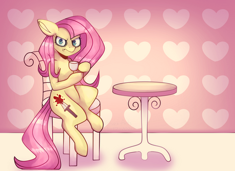 As cute as it is, I must say that Fluttershy's forelegs sure looks skinny. (She really needs to get some mass and muscles into them).