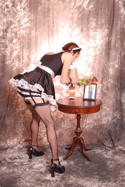 Interesting reminds me of some retro 70's late 60's furniture which where maniquins in sexual positions with the glass on top of them this looks great the maids outfit really tops it off