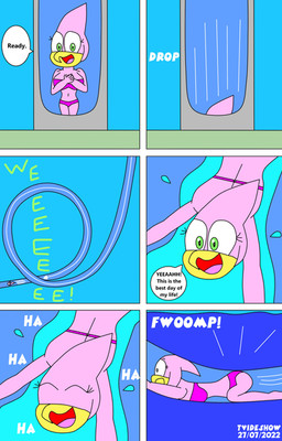 #anthro #babes #bikini #booty #butt #comic #commission #condor #hot #sexy #slide #stuck #waterslide #aqualoop #tvideshow #motleycat #prismthecondor #felineflatorcameron