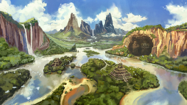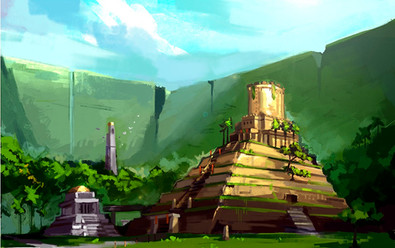 As a recent intern for Riot games I was doing level design and concept. This image is being used with their permission.Working with the art director, he wanted a concept that was very atlantis like. With romanesque structures, a broken statue, large angular cliffs. I added things like the jungle, the river the waterfalls, etc to the idea. This was my favorite background I did during my time there.