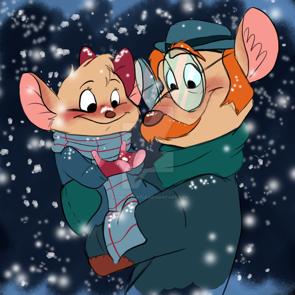 My two favourite mice! Bianca and Bernard from the Rescuers enjoying an evening in their snowy city!This will also be available for purchase in my Redbubble shop here: www.redbubble.com/people/cpear…