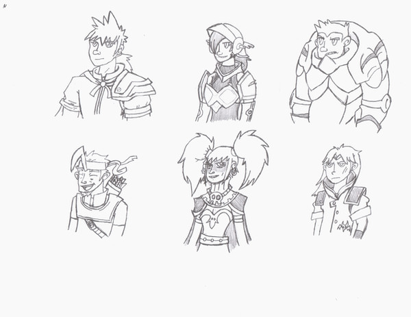 Little sketchy faces/half-torsos I drew of me and my friends to celebrate the return of school. I think it mixes styles sorta well.Ahaha, I'd be the grumpy one on the bottom.