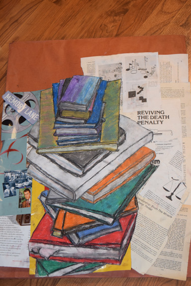 PASTELS?!?!?!?! This is awesome! I like your variating color, well, like your realistic use of color, instead of a more generalized color choice. Like the greens and reds and yellows in the paper, instead of just a bunch of yellow, haha. I also like the placement of the books for this one. Its hard to say whether my favorite part is the OPF book because it draws my eye, or the book at the top because it gives so much to the shape (and to me, mood) of the whole picture. Awesome work! Thank you!