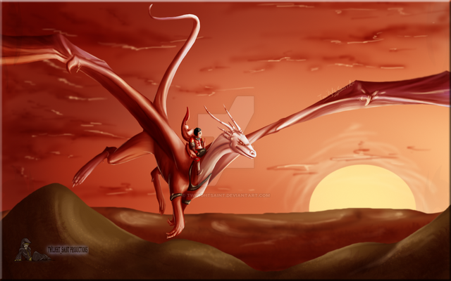 I really like the scale texture on Juban. The textures in general are excellent in this picture. The mane and Haladin's clothes look great, as well.