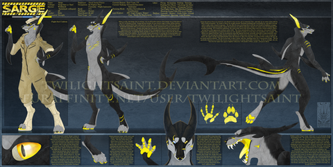 Ahhhhh this guy is sooooo awesome! A doberman and a deinonychus is an awesome hybrid! I love his cool design, especially the mohawk and raptor claws. I bet his fursuit will look great! ^^