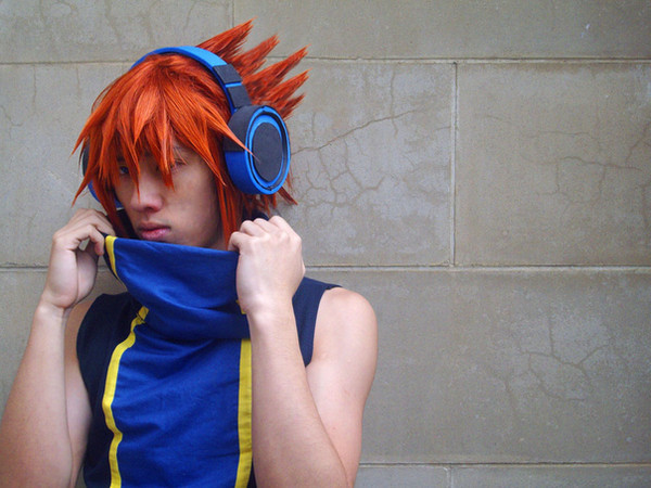 Tai is just so cool XD He dresses like a complete tool, and his hair is ridiculous. This costume felt like a KH costume because it really does NOT translate to real life well. Goggles that are bigger than his head, hair that is both oblonged and the size of a small child, the most toolish shirt ever to be designed and enormous socks. I tried to do everything as to scale as possible, and I'm glad I did.Shirt made by me