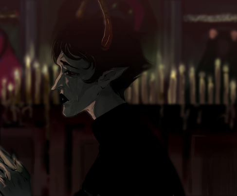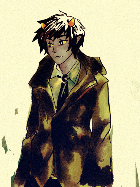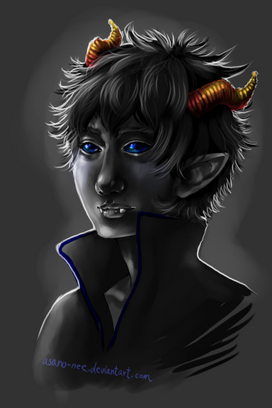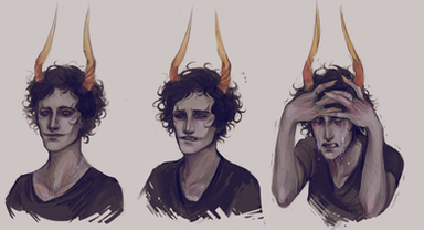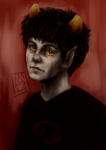 And this painting is lovely, smooth and kind of delicate. Karkat's anatomy is perfect, and his face, and the feelings on it... Beautifully sad.