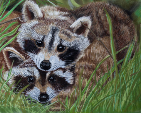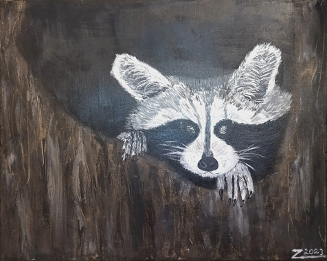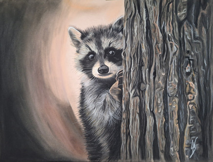 After my racoon pencil studies [link] and subsequent watercolor painting [link] I come full cycle to an acrylic and oil painting.He was so cute I seriously couldn't help myself.