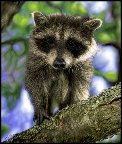 7. Keep on refining the details; in this case the eyes and fur on the raccoon.