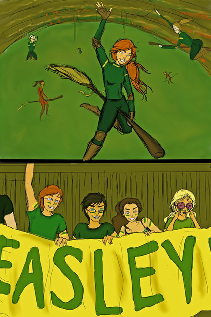 Rose(16): basically a female version of Ron. red hair, and identical blue eyes. but mother's uptight, yet humanitarian personality. and of course, her brains.