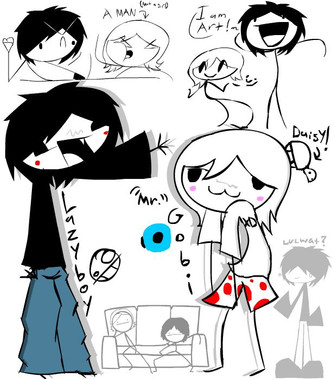 That Isaac cat! So cute! Oh and the daemon on the top right... and the mini comic on the top left... just so much to the eyes!