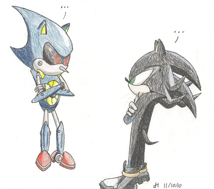 Oops, seems like Shadow has a bigger problem now! ^^ They look all so cute...Specially Metal Sonic. He kind of reminds me of a mother! xD But really, it's awesome. I'm gonna fave it, I love the expressions and the colouring.
