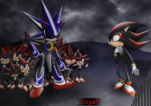 I've been recently playing Sonic Heroes (Yes, I'm so out of gaming fashion, I got a 2004-release game in 2006), and after finishing the team Dark storyline, was met with a cutscene which involved many, many, MANY robotic Shadow clones. I'm sorry to say, my thoughts turned immeadiately to the game's real villain, and everyone's favorite angsty Hedgehog.