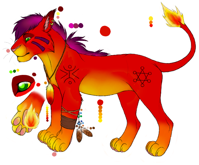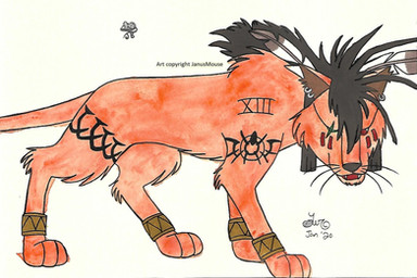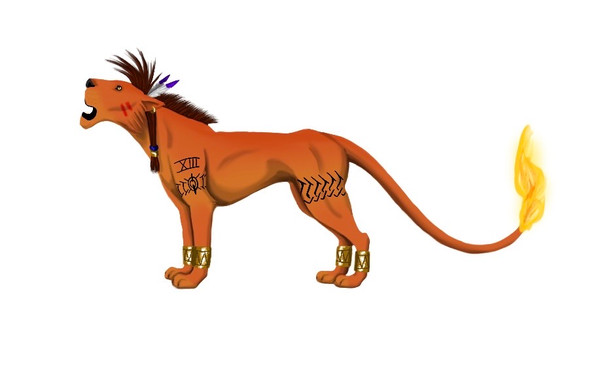 **UPDATE: Jess changed the bangle, earring, and hair bead colors to gold**I love this one so much. ;; This is a gorgeous ref sheet I commissioned my dear friend to make for me, of my favorite character from a video game ever- Red XIII. :3 For those unfamiliar, Red XIII is a sentient cat/dog? (nobody knows for sure!) creature from the game Final Fantasy VII. This ref sheet has helped me a LOT in obtaining commissions of this handsome guy.