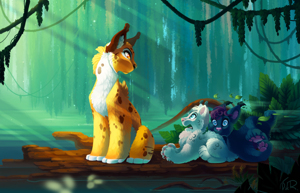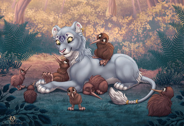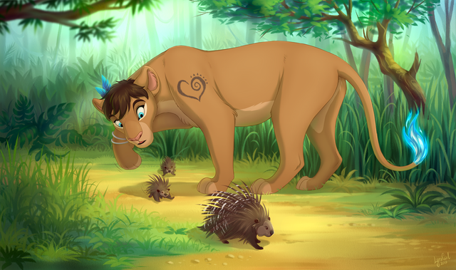 Wow. I don't even know where to start. This. Is. Stunning. I have adored REALLynxGirl's art for years and years, and recently I was able to commission her finally- I gave her artistic freedom, and she gave me this beautiful piece. Lu looks utterly stunning. ;; Like she's in her own movie! The little porcupines are absolutely precious and adorable- look at the babies!