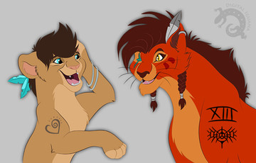 Here's a lovely YCH from , of Lu and Red XIII. I really love the poses here, very cute and dynamic! Red's markings and hair look really amazing.