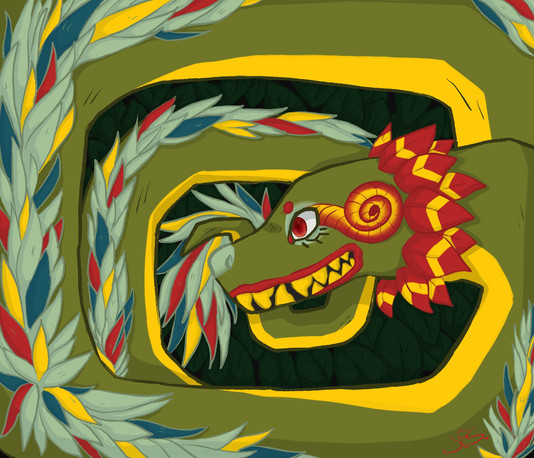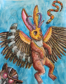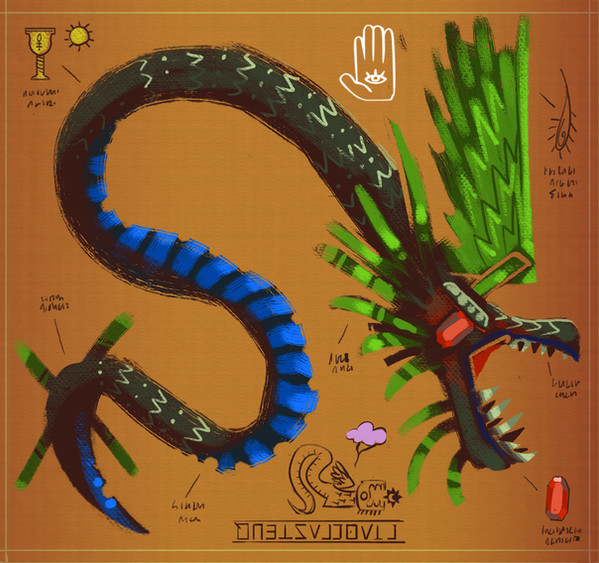 #anicent #aztecart #tochtlicoatl #ancientculture #aztec #bunny #coatl #fantasy #featheredserpent #fictional #illustration #mesoamerican #quetzalcoatl #rabbit #serpent #snake #videogameart #videogames #watercolor #videogameconcept #culturalart #ancientamerica #journeytemples