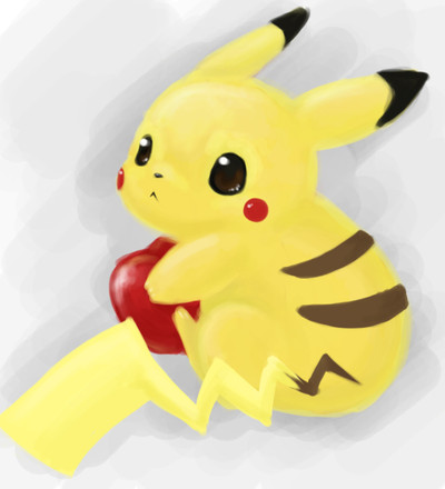 The signature is a bit too solid of a color, and it is sort of distracting. It should be a dark grey rather than a black black, to fit in with the light colors of the Pikachu.